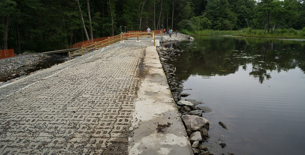 Hobbs Pond restorationWFTASep 1, 20141 min readAfter 3 years and money well-spent, the dam at Hobbs Pond has been rebuilt and the pond is filling up again. Enjoy the view!view across pond to new dam with people and dogs standing on itcloser view of new damclose-up of dam with interlocking concrete brick surfaceHobbs Brook flowing out of dam, with wooden bridge crossing it Hobbs Pond viewed from the dam, with clear water close, vegetated surface in the distanceview along edge of damdam and outlet viewed from adjacent footpath leading to wooden bridgestraight-on view of dam from lower side, with water flowing over the spillwaywooden bridge, outlet and spillway